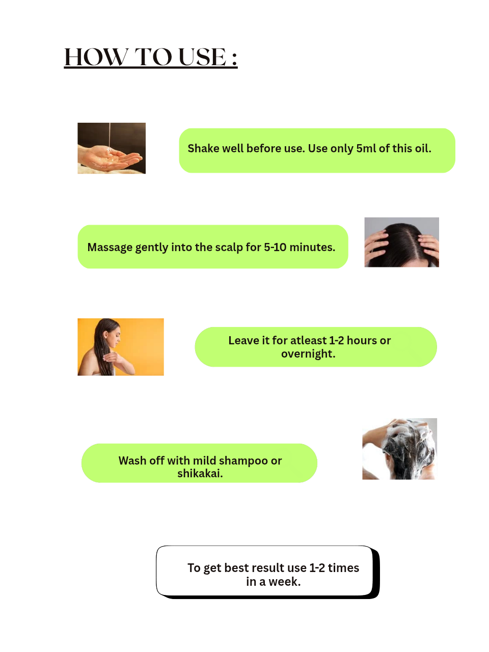 Herbal ingredients may settle—ensure even distribution before applying. - Take a small amount of oil